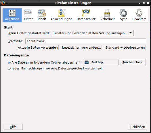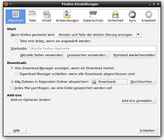 Weggefallene Einstellungen in Firefox 26